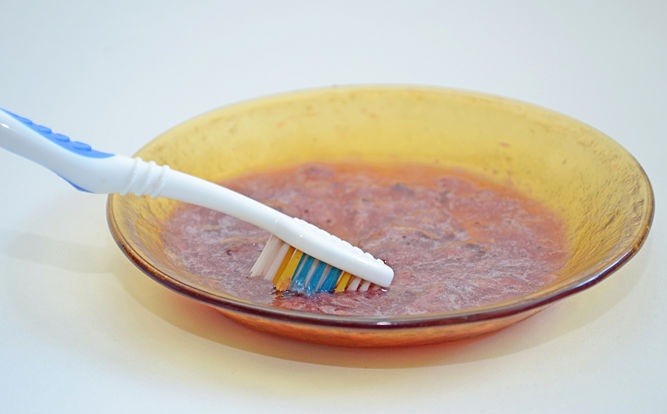 غمس فرشاة الأسنان في المعجون و تطبيقه علي الأسنان . ترك المعجون علي الأسنان لمدة 5 دقائق ,بعدها قومي بتنظيف الأسنان بالمعجون العادي لكي .